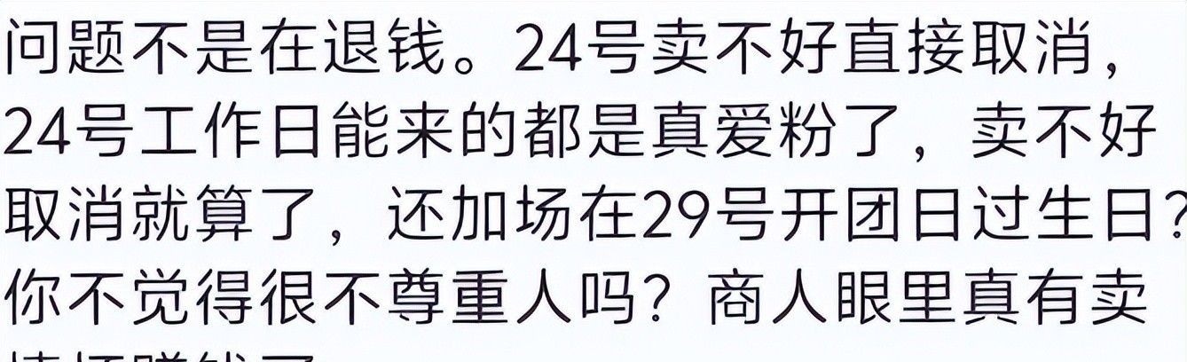 更令人齿冷的是,24日刚取消,29日便火速官宣加场;一边标榜“29周年限定”,一边将期待值拉满,很难不让人质疑其真实动机。