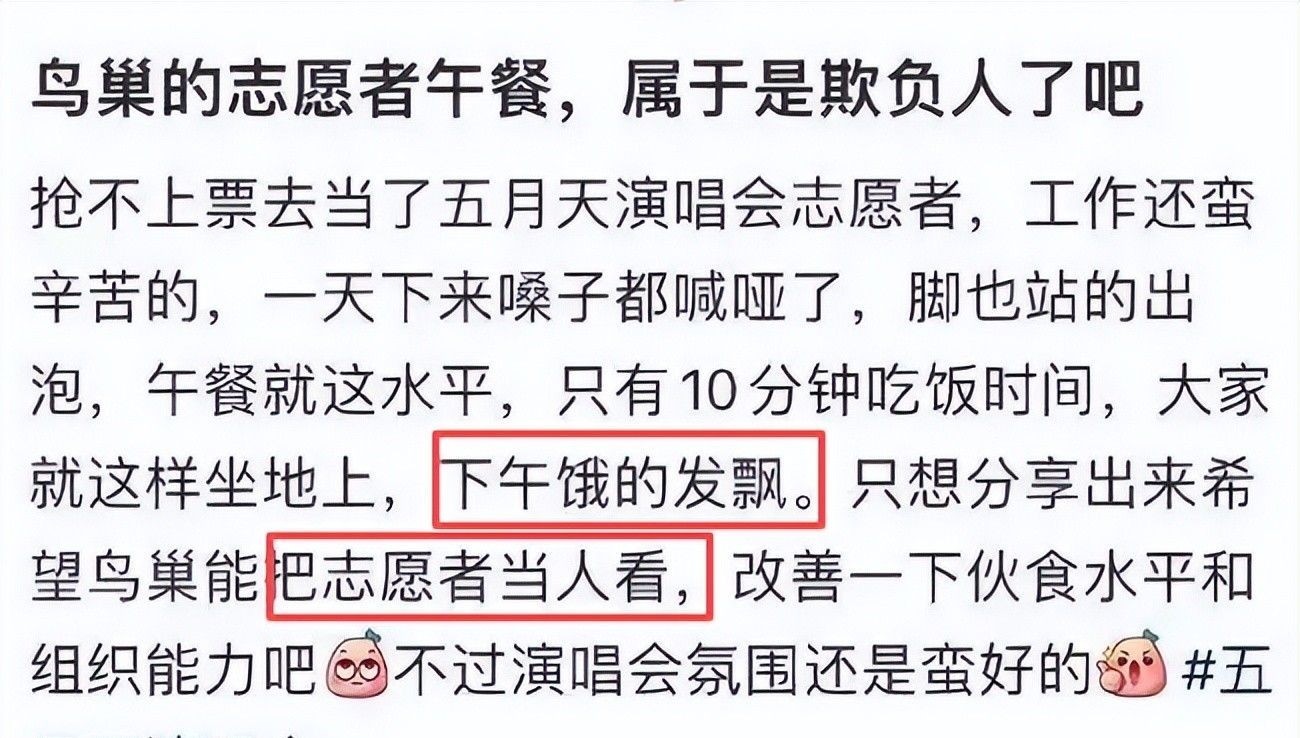 另一起广受关注的事件,是2023年北京鸟巢场次引发的志愿者困境。