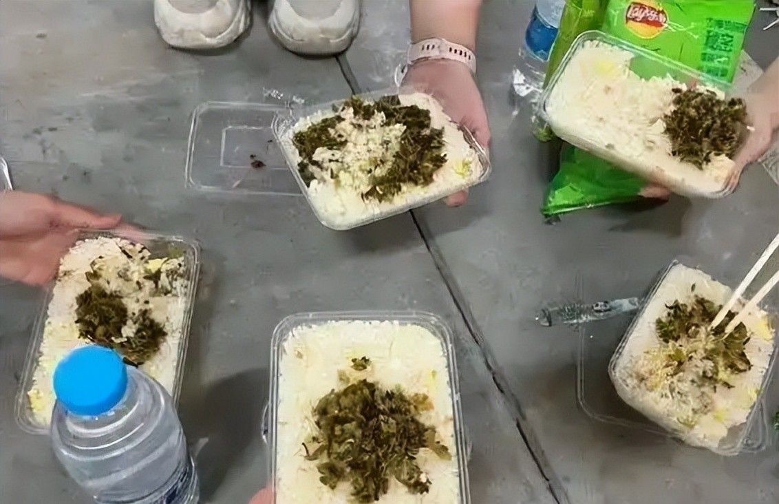 且无桌椅可用,众人只能席地而坐,捧着微凉盒饭狼吞虎咽,连基本尊严都难以维系。